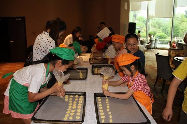 中午十二点左右,所有人员在酒店自助餐厅享用午餐。小朋友们用餐结束后,在酒店厨师的教导下学习DIY制作曲奇饼干,最后,活动在派发六一儿童节纪念品中圆满结束。