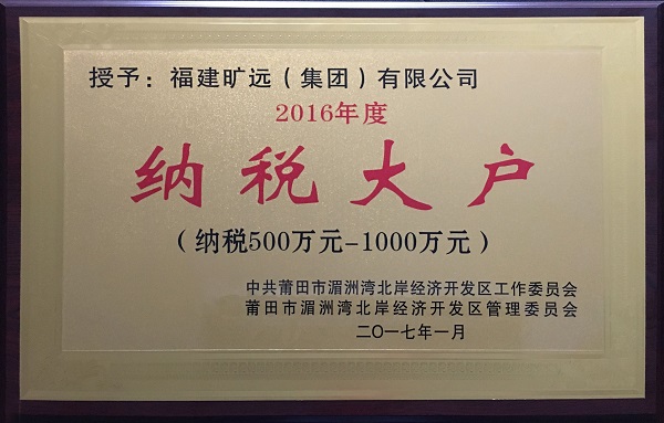 2017年01月 火狐网页版登录入口被中共莆田市湄洲湾北岸经济开发区工作委员会、莆田市湄洲湾北岸经济开发区管理委员会授予2016年度“纳税大户”称号。