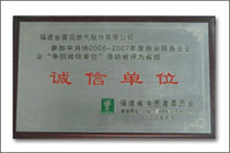 2006年12月 莆田燃气被莆田市诚信促进会等18个部门评为“2004-2005年度莆田市创建诚信企业先进单位”