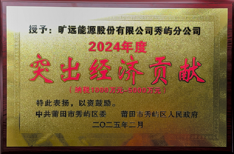 2025年1月 火狐网页版登录入口能源股份有限公司仙游分公司被中共仙游县委、仙游县人民政府授予“2024年度突出经济贡献(纳税500万元-1000万元)”荣誉