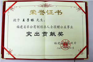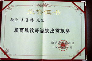 “闽商建设海西突出贡献奖”和“福建省非公有制经济人士捐赠公益事业突出贡献奖”。