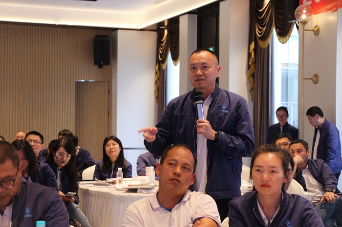 第一日,许老师以幽默风趣的话题引入,“专业工作者、专业经理人、创业者三者差异是?”两两对比,让学员明确团队角色定位;“如何设立绩效目标?”围绕公司当前发展战略,引导团队输出工作目标。