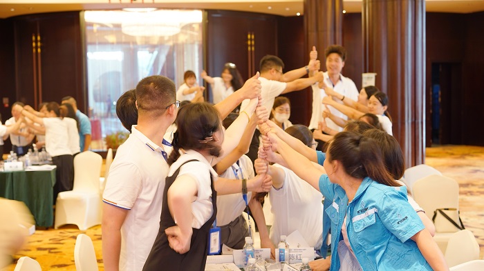 第一日培训伊始,讲师通过团队合作的小游戏,提高团队凝聚力,随后结合自身销售经历带领大家重拾对销售团队的认知、了解目标制订的重要性。