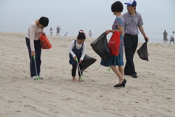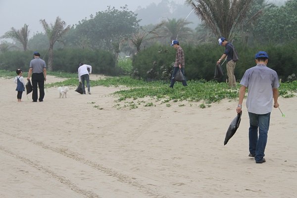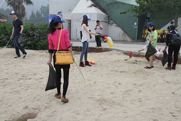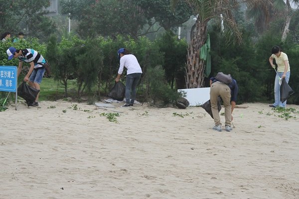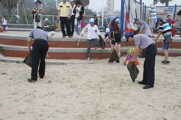 活动中,环岛沙滩上偶有经过的市民抑或游客,看到我们的活动都驻足观看,更有人拿起手机拍摄了我们的活动,对于此类公益活动的开展,他们都表示了支持和赞扬。
