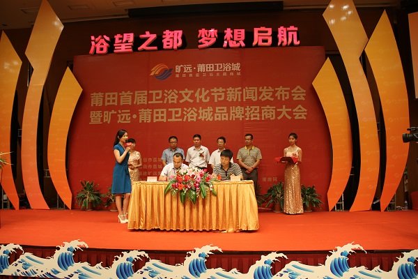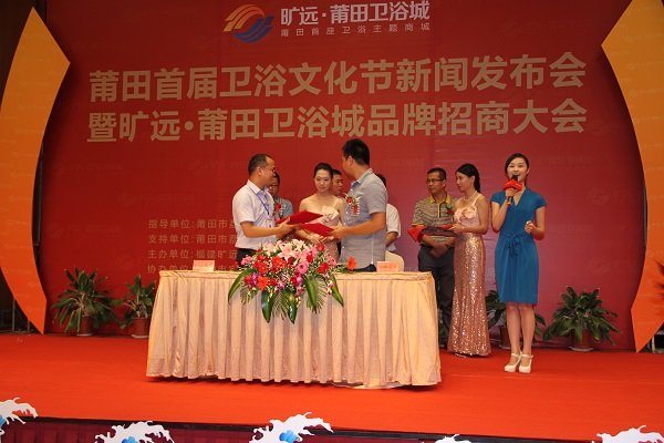 图为莆田首届卫浴文化节暨火狐网页版登录入口•莆田卫浴城品牌招商大会商户签约仪式