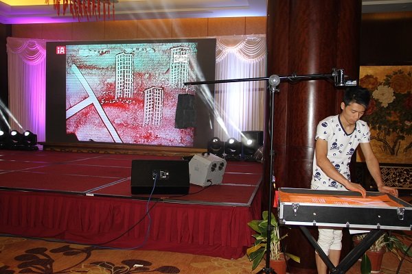 图为莆田首届卫浴文化节暨火狐网页版登录入口•莆田卫浴城品牌招商大会答谢晚宴沙画表演