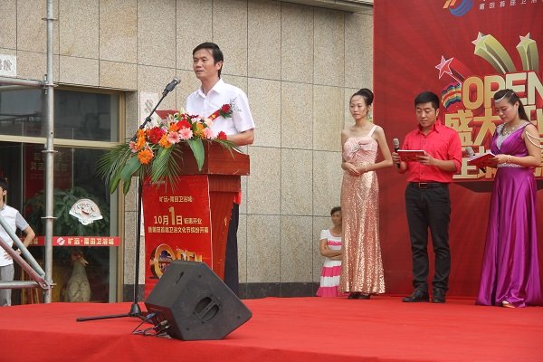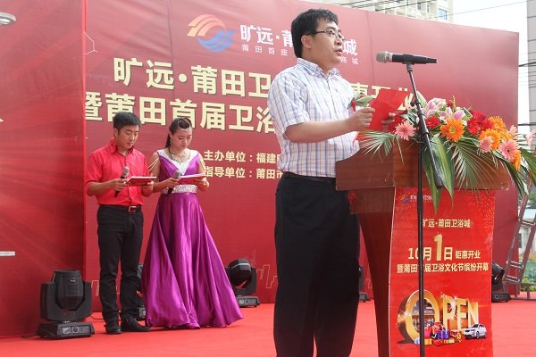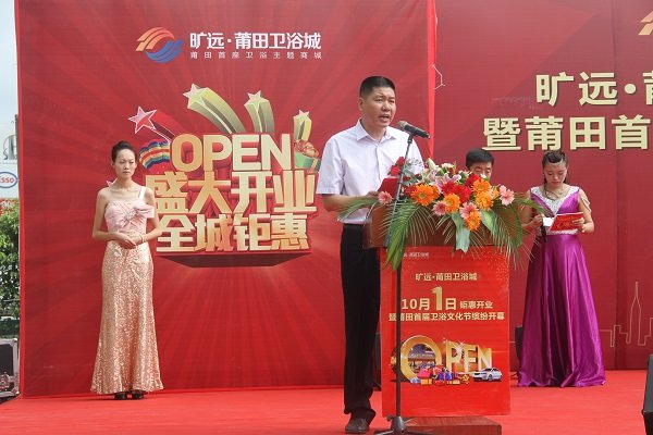 图为荔城区副区长翁俊钦为火狐网页版登录入口•莆田卫浴城开业致辞