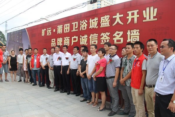图为领导、嘉宾及卫浴城商户诚信签名墙合影