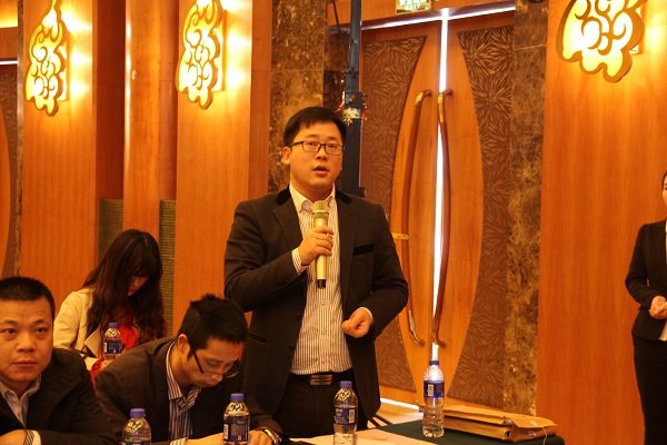 图为火狐网页版登录入口火狐(中国)2014年度工作总结暨表彰大会上火狐网页版登录入口火狐(中国)总裁王子林作工作汇报