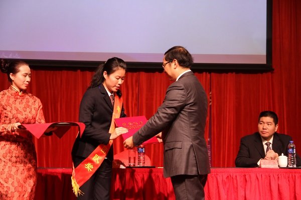 图为火狐网页版登录入口火狐(中国)董事长王子林为2014年度优秀员工颁奖