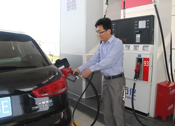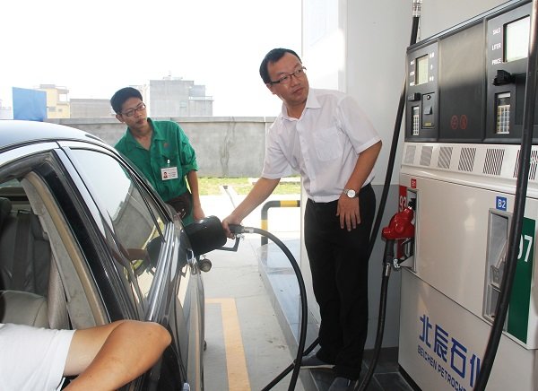 图为北辰石化总经理兰书彬为客户加油