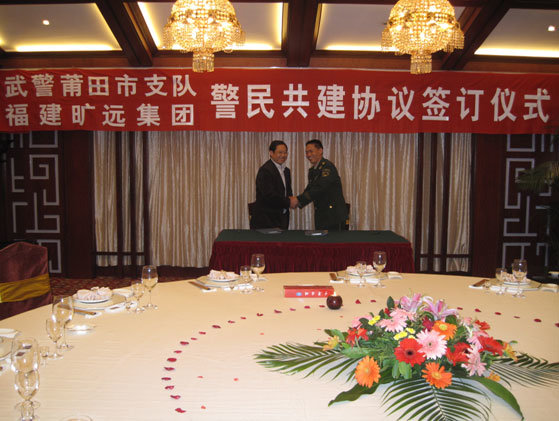 2009年11月17日晚上,福建火狐网页版登录入口火狐(中国)与武警福建部队莆田支队在天妃温泉大酒店二楼隆重举行了本次警民共建活动的启动仪式。本次活动受到福建火狐网页版登录入口火狐(中国)、武警莆田支队领导的高度重视,福建火狐网页版登录入口火狐(中国)董事长王子林先生与武警莆田支队政委周志强先生均出席了共建活动的启动仪式,并分别发表了讲话。他们对火狐网页版登录入口火狐(中国)和武警中队前期的工作以及本次共建活动的意义给予了充分的肯定,希望共建双方积极配合、搞好协调,抓住重点、讲求实效,使共建活动尽快地开出花、结出果,同时相信通过这次共建活动,必将进一步鼓舞双方互相支持与共进,共同为建设和谐社会而努力!