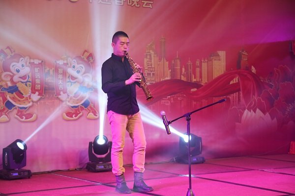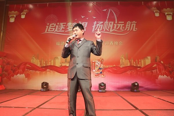 图为2016年迎春晚会董事长王子林上台献唱