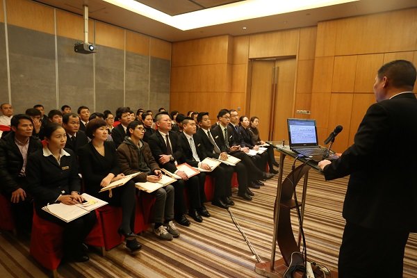 2016年2月1日下午,专题会议在酒店泰山厅召开,酒店主管级以上人员共计50人参加了会议。在会上,酒店总经理仝晖对酒店2015年度经营情况进行了回顾与总结,并就火狐(中国)领导提出的对酒店2016年工作要求及发展规划作了传达。仝总说,望酒店全员齐心协力,攻坚克难,确保顺利完成2016年制定的年度预算目标。