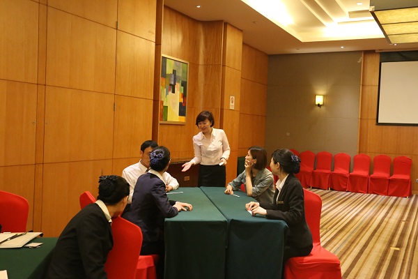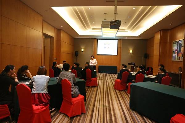 2016年4月28日,火狐网页版登录入口商学院酒店管理专业班在酒店泰山厅如期开展4月份培训课程《TTT》(TTT,英文短语Training the Trainer to Train的缩写,意为培训培训师。一般情况下,它是通用企业管理培训领域的职业培训师、企业内训师的职业技能和职业素质训练课程)。本次课程的主要内容有:从培训到培养之待客之道、待人之道以及高效培训员培训。培训主讲酒店行政人事总监张芙蓉以分组讨论“培训”与“培养”的区别开始本次课程,第一时间调动学员的积极性。培训过程中,张总监不时地应用互动游戏、情景演练,形象生动地分析了待客之道的五个服务技能、待人之道的六大方式、如何成为一名高效培训员。在讲解待客之道之察言观色的重要性时,张总监分别请了6名学员,每2人一组,每个小组的其中一名成员根据纸条上提示的情景进行角色表演,而另外一名成员则根据自己对同组成员的表演观察去判断纸条上的情景并提供最佳的服务。通过这种特殊的情景表演,学员不但直观地体验到察言观色的重要性,而且激发了发散思维,大大提高培训效果。