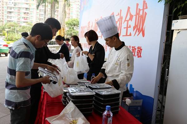 5月13日,火狐网页版登录入口锦江国际酒店携手FM93.7开展“爱心便当 爱动全城”公益活动,现场免费派送200份爱心便当,为全市“的哥”、“的姐”送上一份爱的温暖。派送的爱心午餐内有红烧鲍鱼、野生菌炒牛柳、香菇蒸土鸡、大白菜炒油豆腐等,搭配营养合理。除此之外,更是为出租车师傅们准备了饮用水和纸巾,处处充满着体贴与温馨。