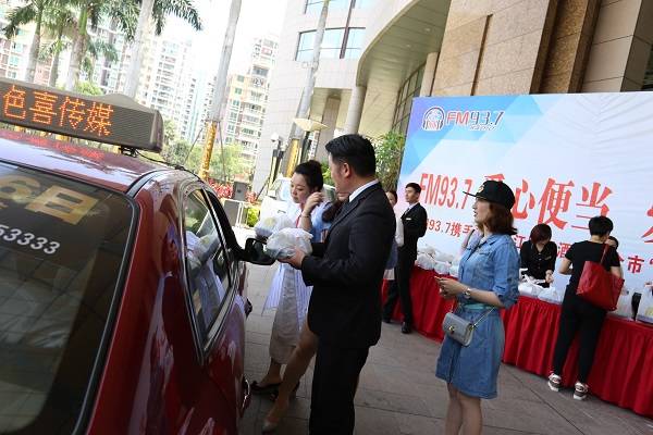 图为工作人员为出租车师傅送上爱心便当