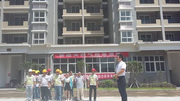 此次抢修其实是上杭县住建局举办的2016年庭院管天然气泄漏突发事故演练。龙岩市住建局城建科郭科长,县市场监管局、消防大队、安监局和临江镇政府相关负责人等出席并参加了此次演练活动,园区企业及周边居民代表现场观摩。