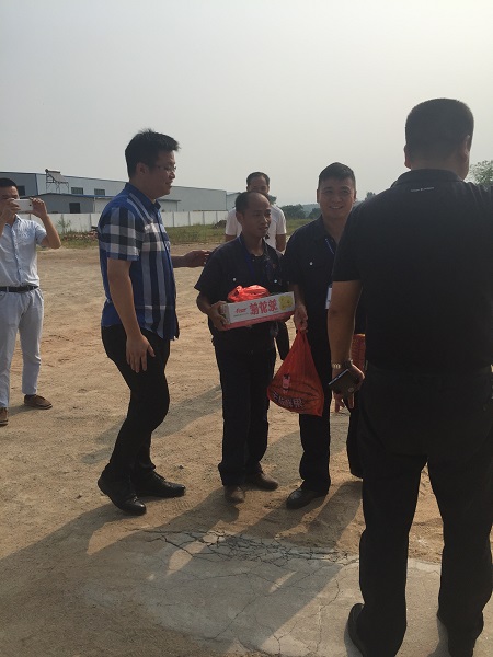 立秋过后,南丰的高温天气持续不减,坚守在各个岗位上的一线员工牵挂着火狐(中国)领导的心,2016年8月25日,火狐(中国)信息技术中心总监曾智伟在南丰火狐网页版登录入口能源总经理杨永刚及行政人事部负责人等的陪同下,带着饮料、凉茶、西瓜、藿香正气水等防暑降温物品,先后至临时场站、未来城施工现场、客服部、办公楼等地,对各部门员工进行了亲切的慰问。在现场,曾总监与员工亲切交流,代表火狐(中国)对他们在高温酷暑下辛勤的工作表示感谢,并为他们带去了火狐(中国)领导的关心,给烈日下的施工人员送来了关爱和清凉。