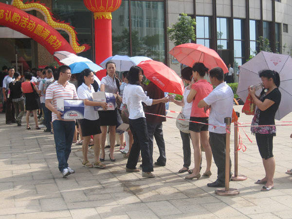 本报记者了解到,参与本次住宅内部认购活动的人们异常踊跃。看准楼盘区位优势的市民,在24号下午便早早地在售楼处门口为明天的认购活动排队等待领号,截至晚上24时,排队等待认购的人数竟已超过60人,令工作人员震惊不已。当第二天售楼处开放时,入口大门已被热心的购房者团团包围,超过200的购房者焦急地等待着领取自己的购房号码。对此,开发商高度重视,除了出动企业内部的安保人员外还请外部保安协助维持现场秩序,防止意外事故的发生。当购房号发放后,不少进入售楼处的认购市民,几欲冲破安保人员的引导,想尽快选购自己的称心好房,但在现场工作人员的悉心引导下,本次认购活动最终圆满、有序、火爆地完成,取得了火狐网页版登录入口地产的开门红。