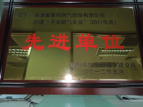 - 莆田燃气获2012年度创建“平安燃气企业”先进单位