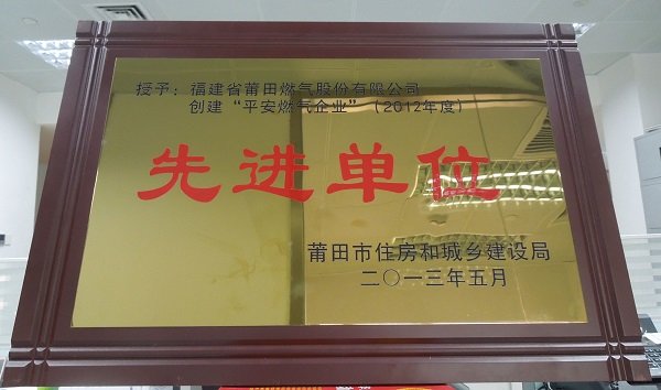 莆田燃气获2012年度创建“平安燃气企业”先进单位
