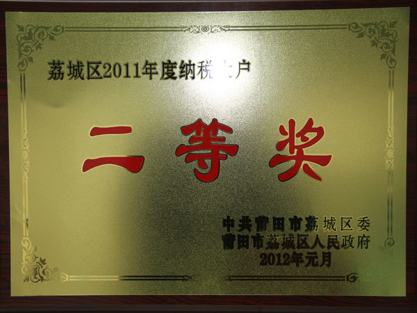 年度纳税大户二等奖”称号!