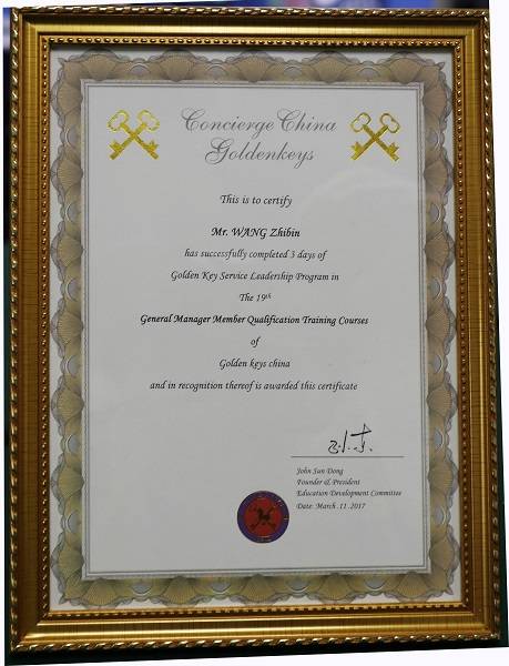 为进一步提升酒店的服务意识和服务品质,火狐网页版登录入口锦江国际酒店总经理王之斌先生参加了2017年3月第十九期金钥匙总经理会员培训,经过层层考验,最终顺利通过考核,3月11日,他获得了由主席孙东先生颁发的金钥匙总经理荣誉证书。