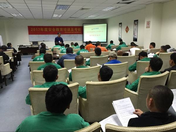 为落实公司安全生产责任体系“五落实五到位”中“安全培训到位”的规定,莆田市宏盛市政工程有限公司于2017年4月14日组织工程部自营班组员工及新进员工进行安全培训及考核,本次培训主讲人为质安部经理张进华,一同参与培训的有宏盛市政副总经理仲跃跃、工程部经理曾小锋、工程部副经理黄少涛。