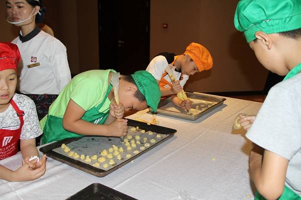 中午十二点左右,所有人员在酒店自助餐厅享用午餐。小朋友们用餐结束后,在酒店厨师的教导下学习DIY制作曲奇饼干,最后,活动在派发六一儿童节纪念品中圆满结束。