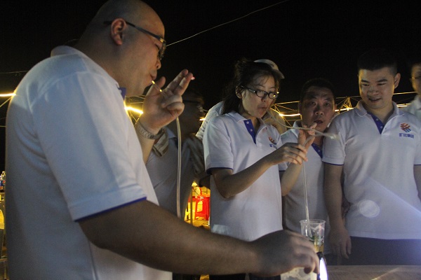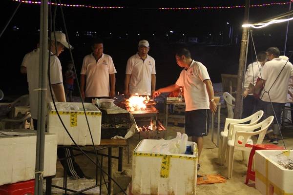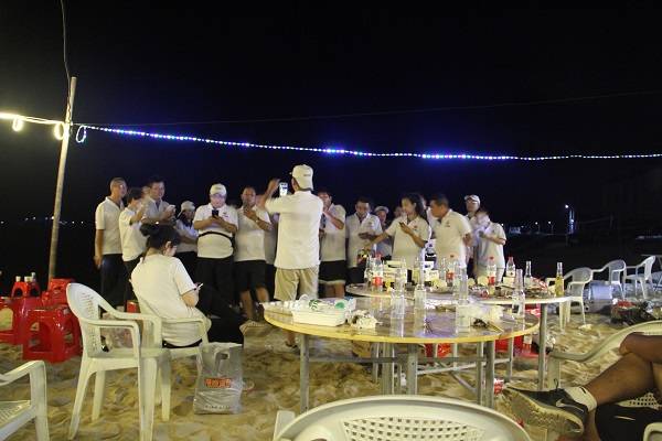 滑沙比赛结束后,所有成员欣赏着海边的日落与晚霞,并开始着手生火、备材,准备晚餐。其中,海神队在生火项目中以明显的优势,快于其他队伍首先烤起了食材。每队队员们一边动手烧烤,一边准备食材,场面好不热闹。期间,开怀畅饮、谁是大胃王等趣味比拼,为晚餐增添了诸多欢笑。在合唱的歌声中,当天活动圆满结束。