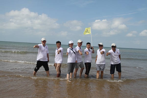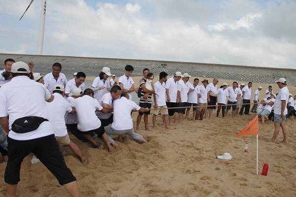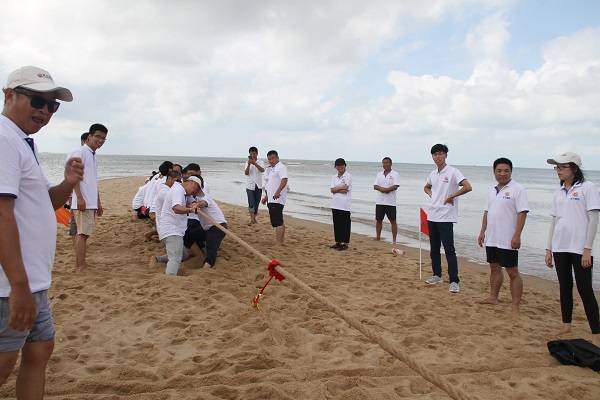23日上午7:40,所有成员出发九重山,在九重山山脚下徒步至山顶,比赛规则为最先到达山顶的队伍(全队成员)获胜。一行人员浩浩荡荡向着目标前进,一路上队员们互相打气、互相扶持,坚持走向了终点。海神队以全员最快到达山顶的优势取得该项目的胜利。紧接着,所有成员赶赴东户黄金沙滩,开展沙滩拔河比赛。比赛过程中,所有成员劲往一处使,有人被拔河绳擦伤,有人摔倒在了沙滩上,但却丝毫未动摇他们为团队争取荣誉的信念,他们将伤痛抛在了脑后,竭力争取,最终,海神队赢得了拔河比赛的冠军。