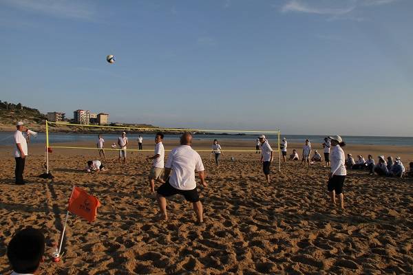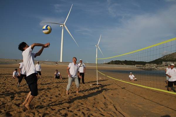 作为当天活动的第三个项目,“大自然的搬运工”在下午14:00隆重登场,该项目考验的是各成员之间相互协作和团队分工能力。在烈日照射的沙滩上,每队队伍起点的成员奋力奔跑,只为争分夺秒多取一杯水,而其他队员则迅速地接过一杯杯水,团队协作的精神在烈日下显得耀眼夺目,最终,蛟龙队获得该项目的冠军。休息片刻后,“沙滩排球赛”随即登场,在两两对决的过程中,比拼看点十足,比分步步紧逼,最后,风车队取得了该项目的胜利。