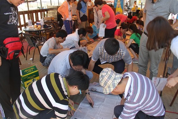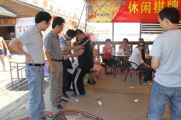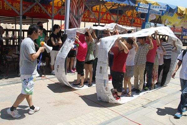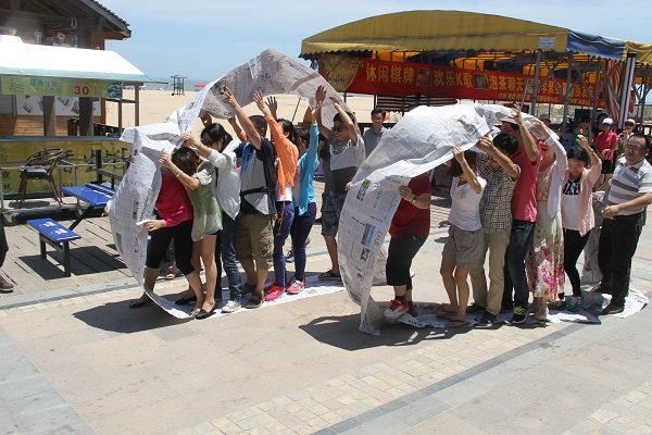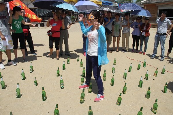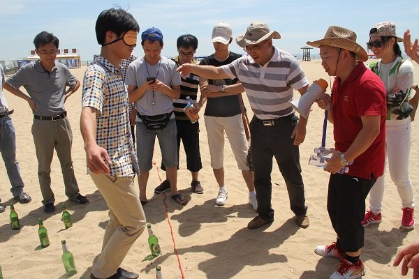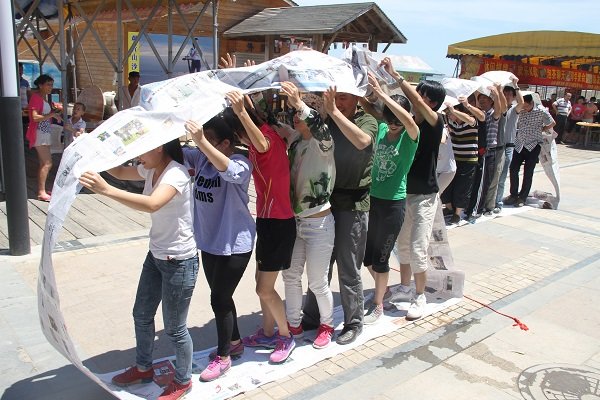 虽烈日炎炎,却难抵参与者们高涨的热情。到达目的地后,以抽签的方式分成了沙漠之鹰队、飓风队、烈日队及野狼队四个小组进行团队拓展。
