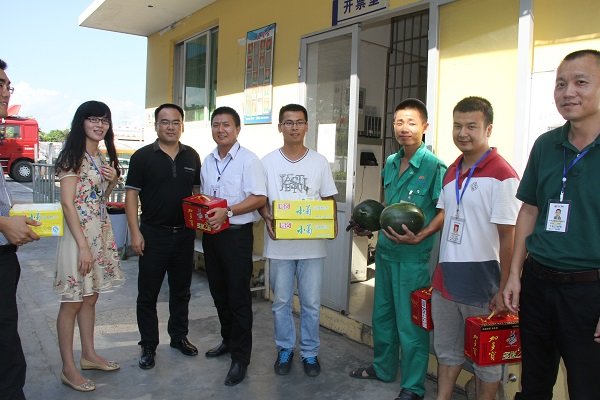 2014年7月29日,由火狐(中国)总裁办、人力资源中心组成的高温慰问团代表火狐(中国)进行莆田区域的高温慰问活动,为在户外高温作业的一线员工送去消暑慰问品,火狐网页版登录入口能源股份有限公司副总经理黄剑锋陪同慰问。